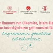 Millî birlik ve beraberliğimizin en güzel yansımalarından biri olan Ramazan Bayramı’nın ülkemize ve milletimize huzur getirmesini diler; bütün İslam âleminin bayramını en içten dileklerimizle tebrik ederiz. Prof. Dr. Osman MERT Türk Dil Kurumu Başkanı