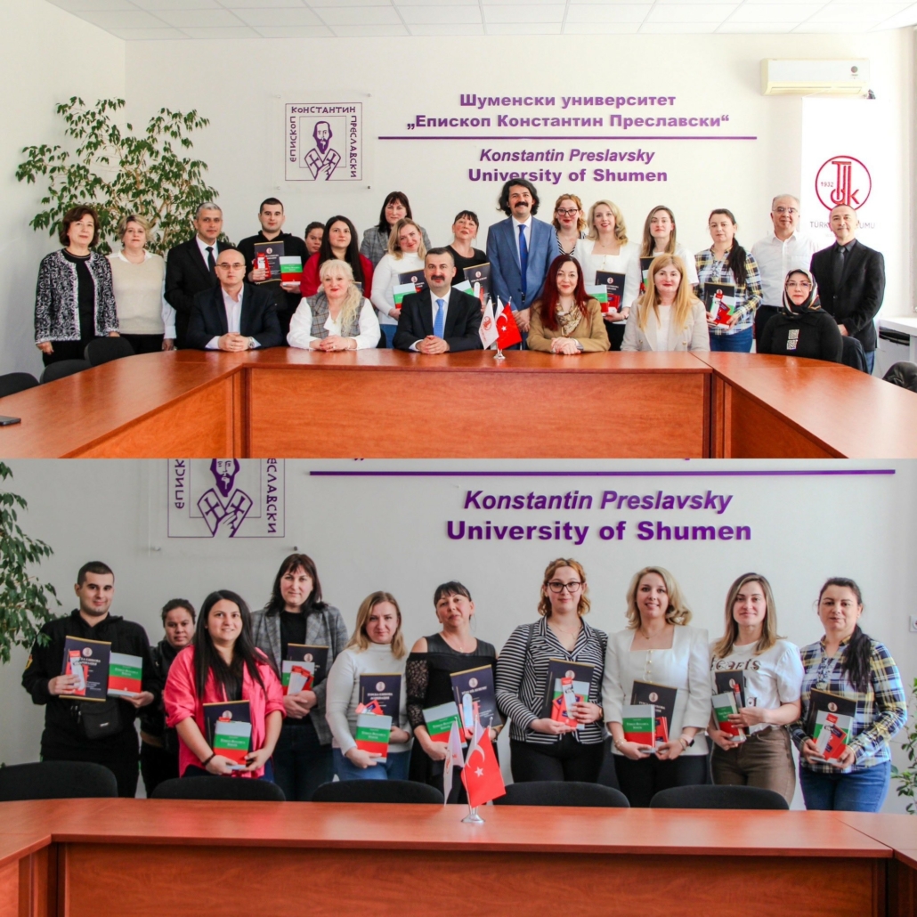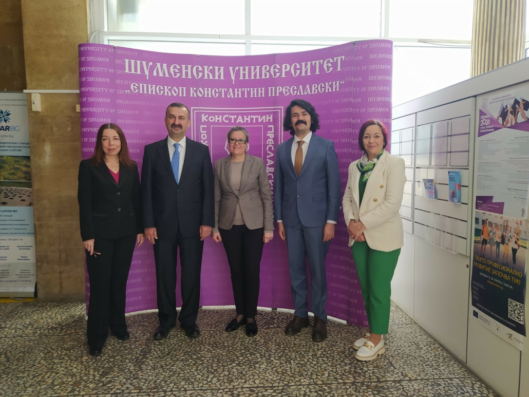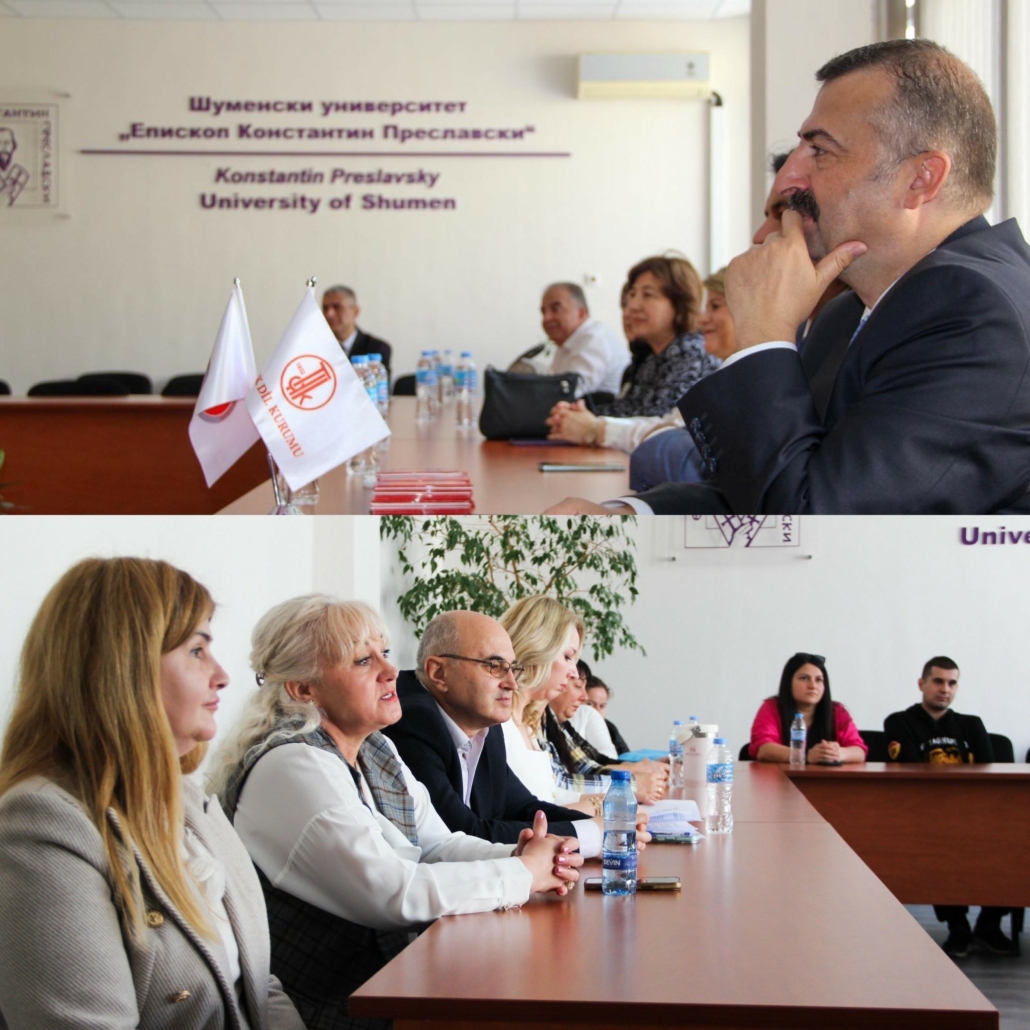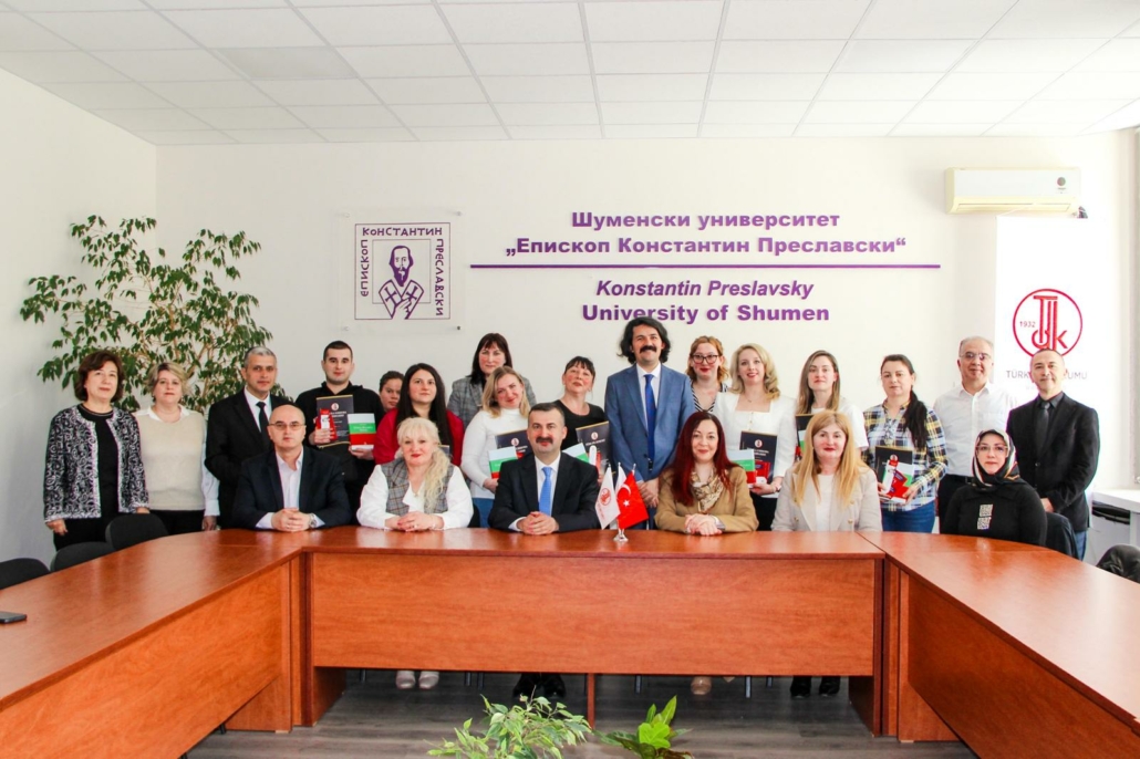 15 Nisan 2026 tarihinde heyet, Bulgaristan’ın köklü yükseköğretim kurumlarından Konstantin Preslavski Şumnu Üniversitesi Türk Dili ve Edebiyatı Bölümünü ziyaret etti. Gerçekleştirilen program kapsamında bölüm yönetimi ve Türk Dil Kurumu heyeti arasında heyetler arası bir görüşme yapıldı, sınıflara misafir olunarak dersler izlendi ve ders programı incelendi. Görüşmede iki Kurum arasındaki akademik ilişkiler, dil öğretimi alanındaki iyi uygulamalar ve geleceğe yönelik iş birliği imkânları ele alındı.