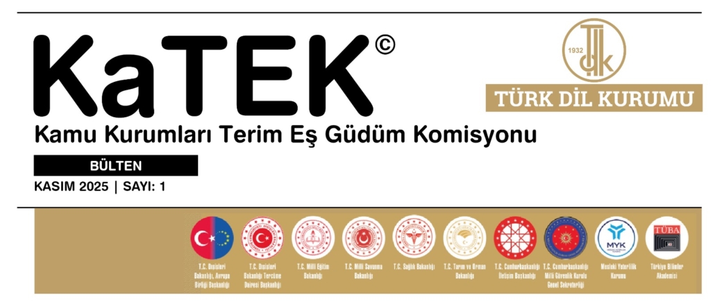 Türk Dil Kurumu Terim Bilimi Bilim ve Uygulama Kolu ile oluşan Kamu Kurumları Terim Eş Güdüm Komisyonu birlikteliğiyle hazırlanan KaTEK Bülten’in ilk sayısı yayımlanmıştır. Kamu kurumları arasında yürütülen terim çalışmaları, gerçekleştirilen toplantılar ve ortak projelere ilişkin bilgilere bültenden aşağıdaki bağlantı aracılığıyla erişebilirsiniz.