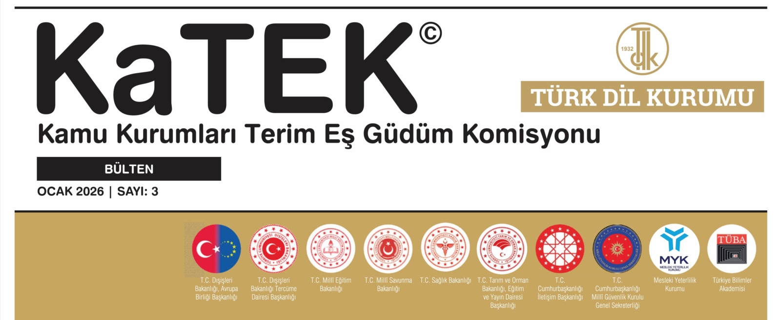 Türk Dil Kurumu Terim Bilimi Bilim ve Uygulama Kolu ile oluşan Kamu Kurumları Terim Eş Güdüm Komisyonu birlikteliğiyle hazırlanan KaTEK Bülteni’nin Ocak sayısı yayımlanmıştır. Kamu kurumları arasında yürütülen terim çalışmaları, gerçekleştirilen toplantılar ve ortak projelere ilişkin bilgilere bültenden aşağıdaki bağlantı aracılığıyla erişebilirsiniz.
