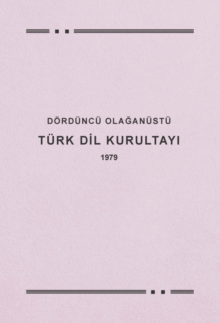 DÖRDÜNCÜ OLAĞANÜSTÜ TÜRK DİL KURULTAYI (1979): Türk Dil Kurumu Türk Dil Kurumu Yayınları: 463, 2. Baskı 2026 (E-Kitap), 57 sayfa Eserde, 7-8 Temmuz 1979 tarihinde gerçekleştirilen ve Türk Dil Kurumunun idari işleyişine ait çalışmalar hakkında bilgi verilen Dördüncü Olağanüstü Türk Dil Kurultayı ile ilgili bilgiler verilmektedir. |