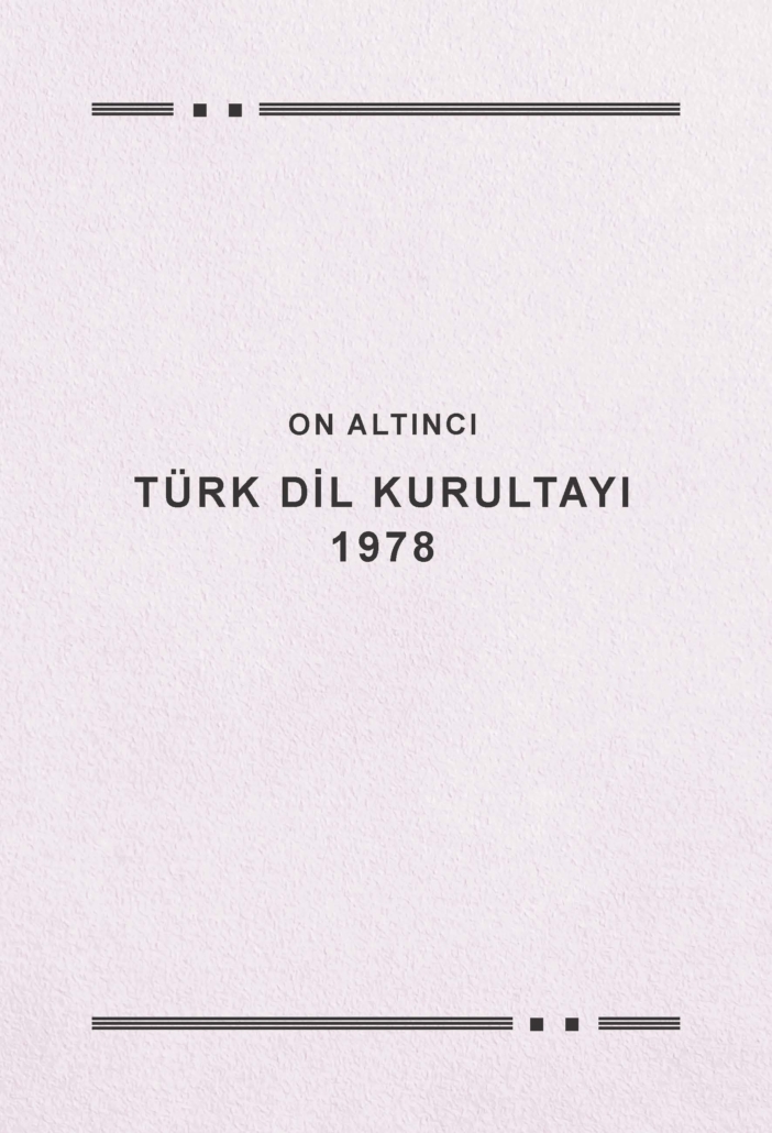 ON ALTINCI TÜRK DİL KURULTAYI (1978): Türk Dil Kurumu Türk Dil Kurumu Yayınları: 455, 2. Baskı 2026 (E-Kitap), 294 sayfa Eser, Türk Dil Kurumu tarafından 8-11 Temmuz 1978 tarihleri arasında düzenlenen On Altıncı Türk Dil Kurultayı’nın, açış konuşmasından başlayarak “Dilbilgisi”, “Derleme ve Tarama”, “Terim”, “Sözlük”, “Türe ve Tüzük” ile “Yayın ve Tanıtma” Yarkurulları tarafından sunulan raporları kapsamaktadır. Kitapta ayrıca, Kurumun işleyişine bağlı olarak yürütülen çeşitli çalışmalar yer almakta, Türk Dil Kurumunun Türk dilini geliştirme ve düzenleme yönündeki faaliyetleri bütüncül biçimde aktarılmaktadır. |