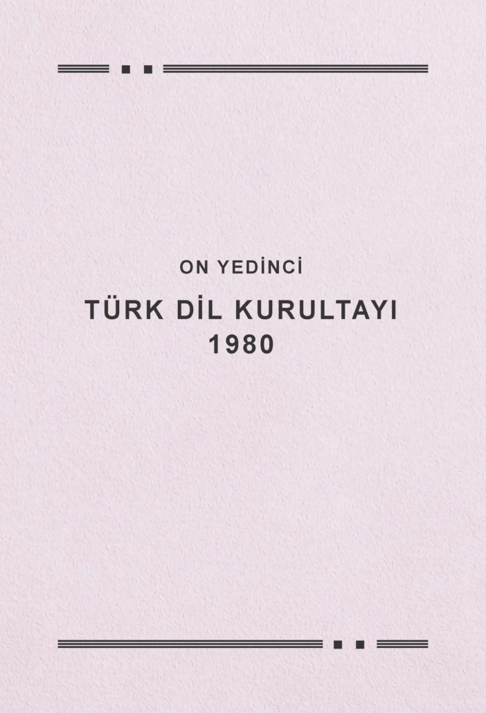 ON YEDİNCİ TÜRK DİL KURULTAYI (1980): Türk Dil Kurumu Türk Dil Kurumu Yayınları: 486, 2. Baskı 2026 (E-Kitap), 177 sayfa Kitap, 28-30 Ekim 1980 tarihlerinde gerçekleştirilen Türk Dili Kurultayında yapılan konuşmaları ve Kurumun işleyişine dair yapılan çalışmaları içermektedir. |