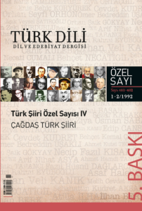 TÜRK DİLİ DİL VE EDEBİYAT DERGİSİ TÜRK ŞİİRİ (ÇAĞDAŞ TÜRK ŞİİRİ) ÖZEL SAYISI IV: TÜRK DİL KURUMU Türk Dil Kurumu Yayınları: 481D-482D, Ankara 2025, 5. Baskı, 786 sayfa İlk baskısı 1992 yılında yayımlanan bu özel sayı, çağdaş Türk şiirinin önemli temsilcilerinin eserlerini bir araya getirerek, dönemin şiir anlayışını ve edebî eğilimlerini kapsamlı bir şekilde sunmaktadır. Çağdaş Türk şiirini anlamak ve analiz etmek isteyen araştırmacılar, edebiyat öğrencileri ve şiire ilgisi olanlar için eşsiz bir kaynak niteliği taşımaktadır. Türk şiirinin çağdaş gelişim süreçlerini ve edebî yönelimlerini takip etmek isteyen herkes için önemli bir başvuru kaynağıdır. Son baskısı ise yeni dizgisi yapılarak 2025 yılında yayımlanmıştır.
